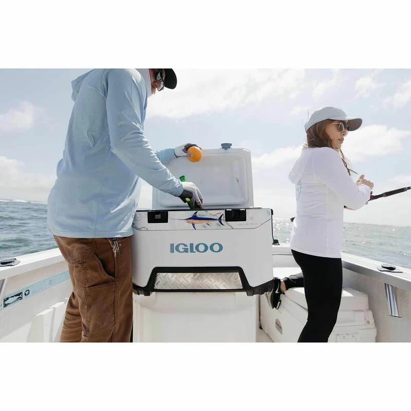 The IGLOO 52 qt. BMX Blue Marlin Cooler is your go-to cooler for any rugged or leisure adventure you find yourself in! With the heavy duty blow-molded construction not only will you have some serious durability but also ice retention for over 5 days! Take it to the Beach, take it camping or take it to the tailgate.