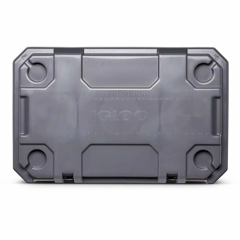 On a heaving deck or at a rustic camp site, rugged IMX coolers are designed to stand up to rough conditions and keep their contents cold. Ice retention is maximized by Cool Riser Technology® and Ultratherm® insulation in the body and lid. Usage is made easy by marine-grade rubberized lid latches and self-stopping integrated hinges that keep the lid open for easy access to contents. Other features include molded-in non-slip steel braided cable side handles, anti-skid feet, lockable lid loops, stainless steel locking plate, bottle opener, four self-draining cup holders built into lid. Anglers are kept honest by the fish ruler molded into the lid. A threaded drain plug with hose hookup makes draining easy.