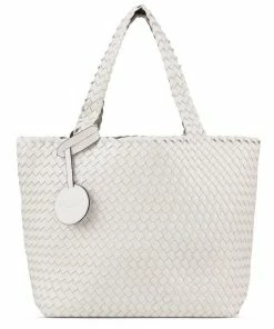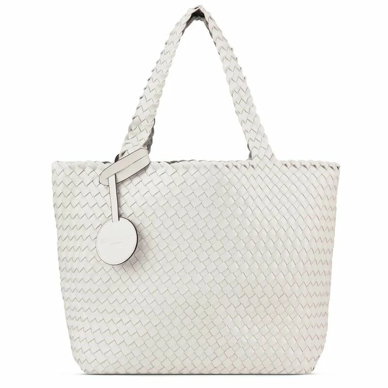 A medium size tote bag that is reversible from one color to another. This tote can be used at the beach, on an overnight trip. Water and stain friendly, which means it is made of recycled material that is easy to clean.