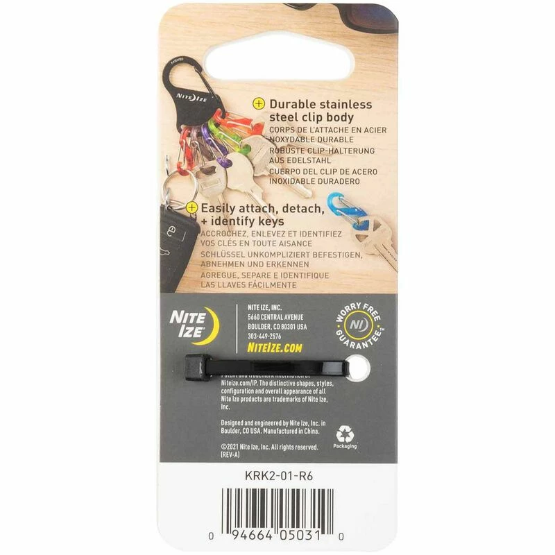 - Stainless steel S-Biner body paired with six colorful plastic #0 S-Biners