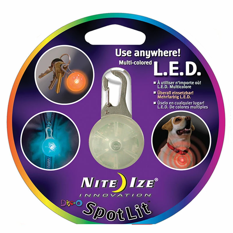The Nite Ize SpotLit LED is the perfect mini-beacon whenever you need a little help in the dark. Set in a lightweight stainless steel carabiner, it attaches quickly and securely to key rings, jackets – just about anything with a hook or zipper. Its long-lasting LED provides an ambient glow bright enough for everything from reading fine print to finding your car door keyhole. Attached to things like tent lines and camping gear, it provides instant location of hazards and necessities; attached to your person (jacket, backpack, running belt) it tells other people where you are, when they might not otherwise see you. Choose from two modes: press once for steady glow, twice for continuous flash. Water-resistant, long-life, replaceable batteries included.