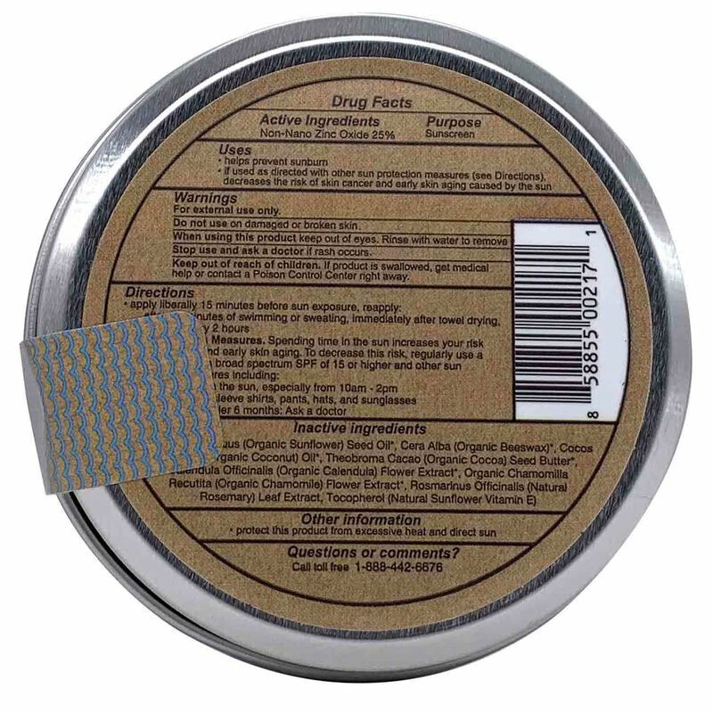 With non-nano zinc oxide as its only active ingredient, it provides UVA-UVB true broad spectrum protection and is very water resistant beyond 80 minutes. The reusable tin (perfect for collecting sea shells) is plastic free and features fun, colorful characters, encouraging safe sun practices and the importance of making sustainable choices.