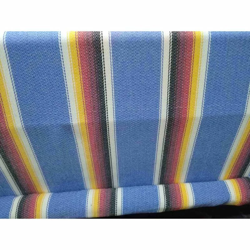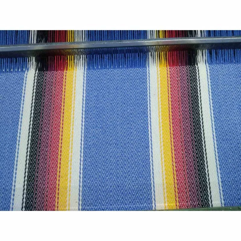 As they collect the excess fabric, it is sorted by colors, then cut into long strips and then woven into threads. The threads are then woven into fabric, and then the fabric is then cut and sewn into their unique beach blankets.