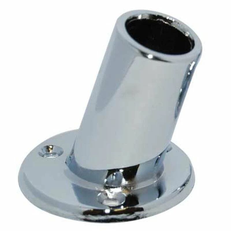 Angled pole sockets in flush- or surface-mount styles. Chrome-plated bronze.