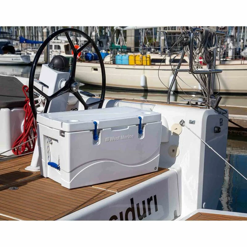 Designed for the saltwater fishing enthusiast, this premium marine grade cooler features 316 stainless hardware, embossed tape measure on lid, tethered drain plug and lockable lid slots. Includes two bottle openers, two tie down slots and a refrigerator quality gasket. With 120 quarts internal capacity this cooler offers more quarts per dollar compared to competitors.