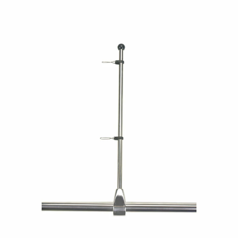 Heavy, cast stainless steel rail clamps for 7/8″ and 1″ rails. Includes quick-release flag clips. Staff is 1/2″ tube stock, 17″L. Plastic universal rail mount included. Replacement staffs, including clips, sold separately.