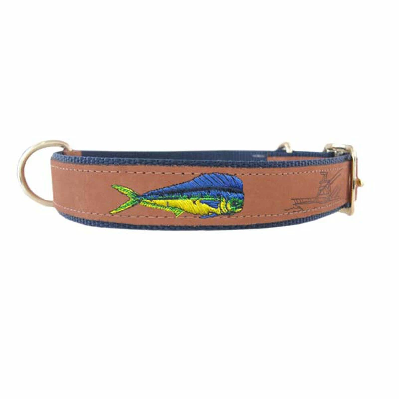 Dress your dog for fishing success in this embroidered leather collar.